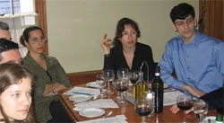 Co-authors of ROMANIA REDUX at Alex Fund event in NYC (March 16-05) Lft to Rt: Joaquin Altenberg, Manuel Costescu, Cristiana Pasca, Dan Dimancescu, Verena Kugi, Tiberius Vadan (missing: Anca Harasim and Marian Stas) ... and at Harvard Center for European Studies (April 8-05) middle left and below V. Kugi and M. Costescu: |