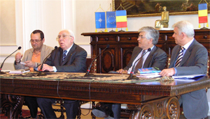 Lft to Rt: Mr. Marian Stas (co-author), Prof Mircea Malitza, Mr. Dimancescu (co-author), and Senator Teodor Malescanu, Pr. Black Sea Institute | |||||||||||||||||||||||||||||